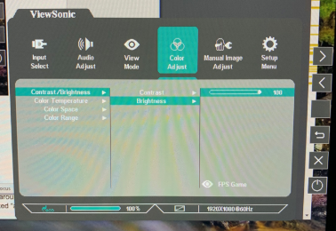 ViewSonic monitors use different OSD menu layouts depending on the model. This means the button labels, joystick controls, and menu names may vary slightly from what you see in this guide. Verify with your model's User Guide. However, the brightness setting is always located within the Picture or Brightness/Contrast section of the OSD.