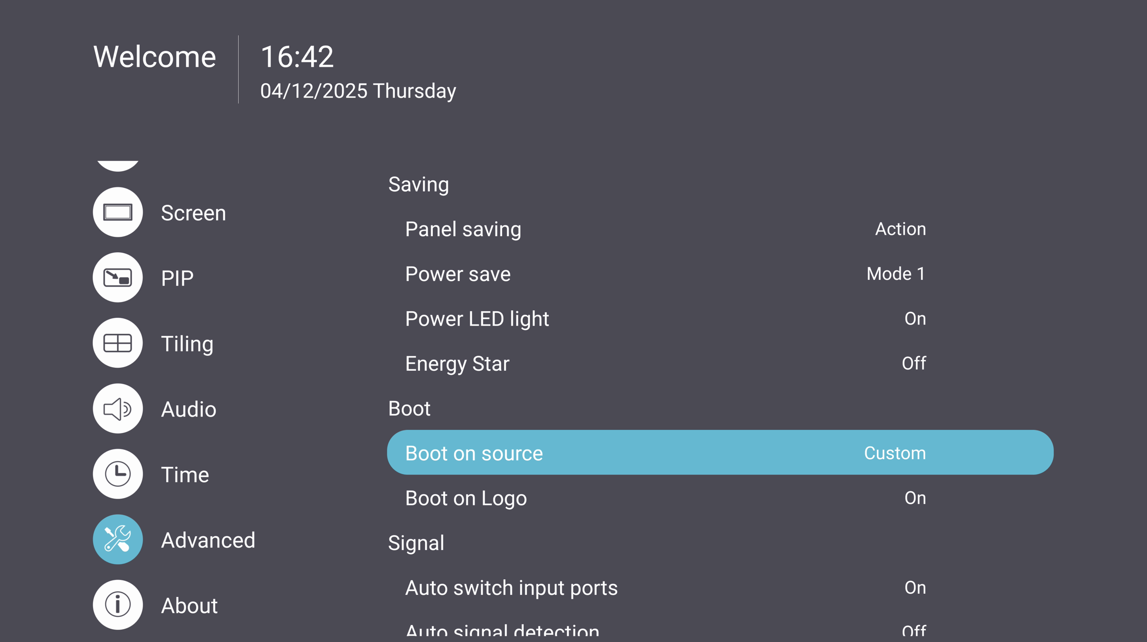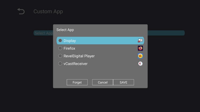 When the display starts up, it will automatically launch the desired application set as the custom source.